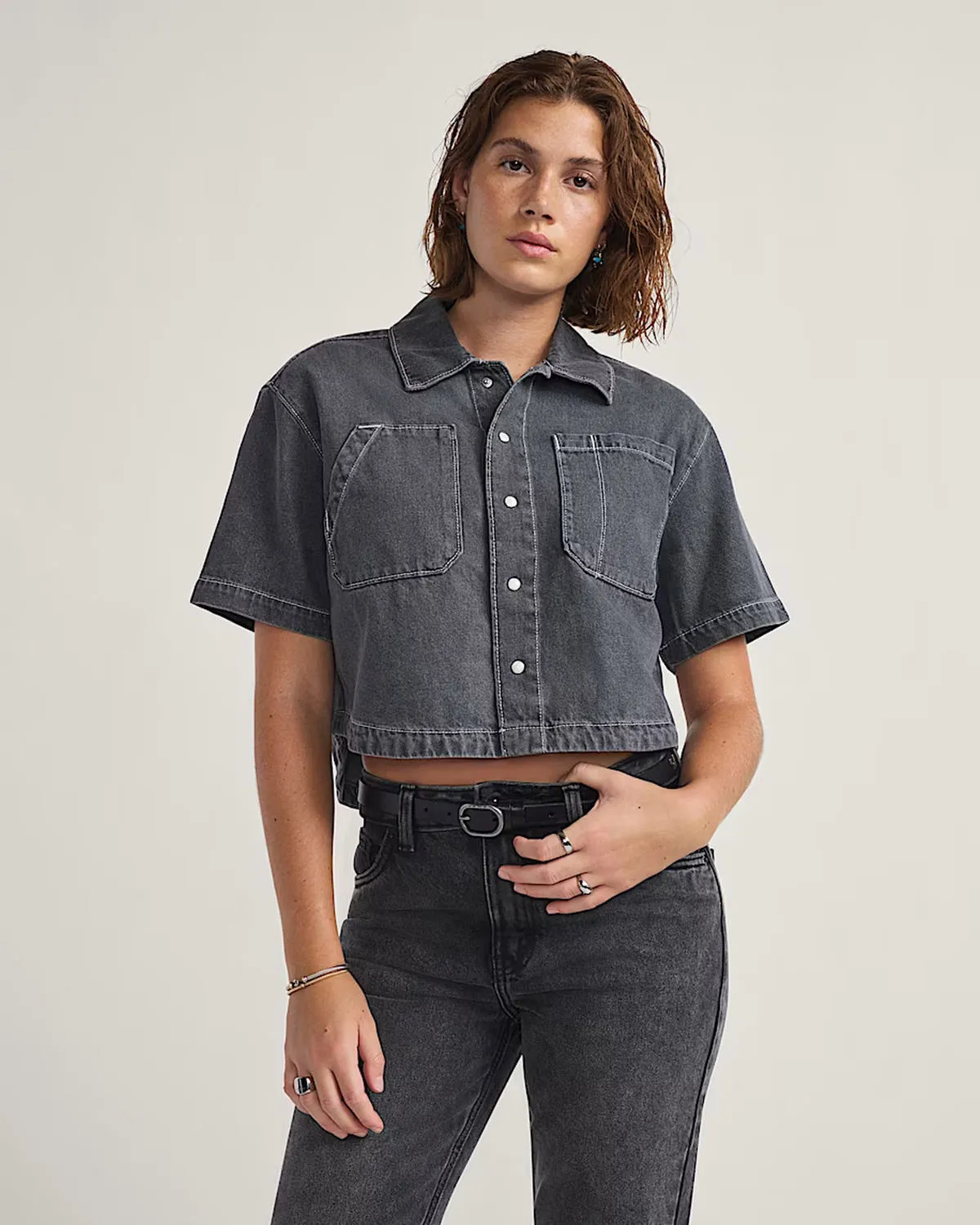 Natalie SS Denim Boxy Button Up