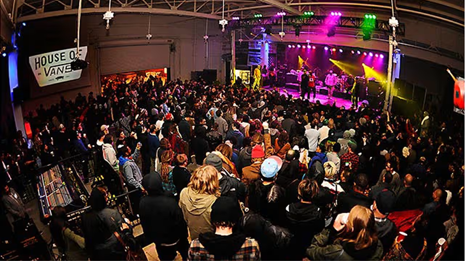 Vans opens the House of Vans event space in Brooklyn, skate and event space in New York with music by Public Enemy and a hard charging bowl session headlined by skate legends Tony Alva, Steve Caballero and Omar Hassan.