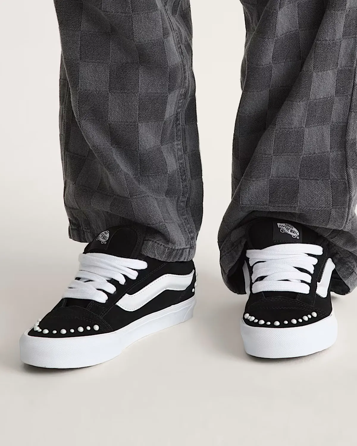 Knu Skool, rođen 1998. godine, donosi hrabar zaokret klasičnom Vans Old Skool modelu. Sa velikim pertlama, pufnastim jezikom i mekanim okovratnikom, oživljava skejt stil iz 90-ih, dok ostaje zasnovan na prepoznatljivoj Vans vulkanizovanoj, waffle đon konstrukciji. Njegov ekstravagantni gornji deo čini ga upadljivim u skejt kulturi.
